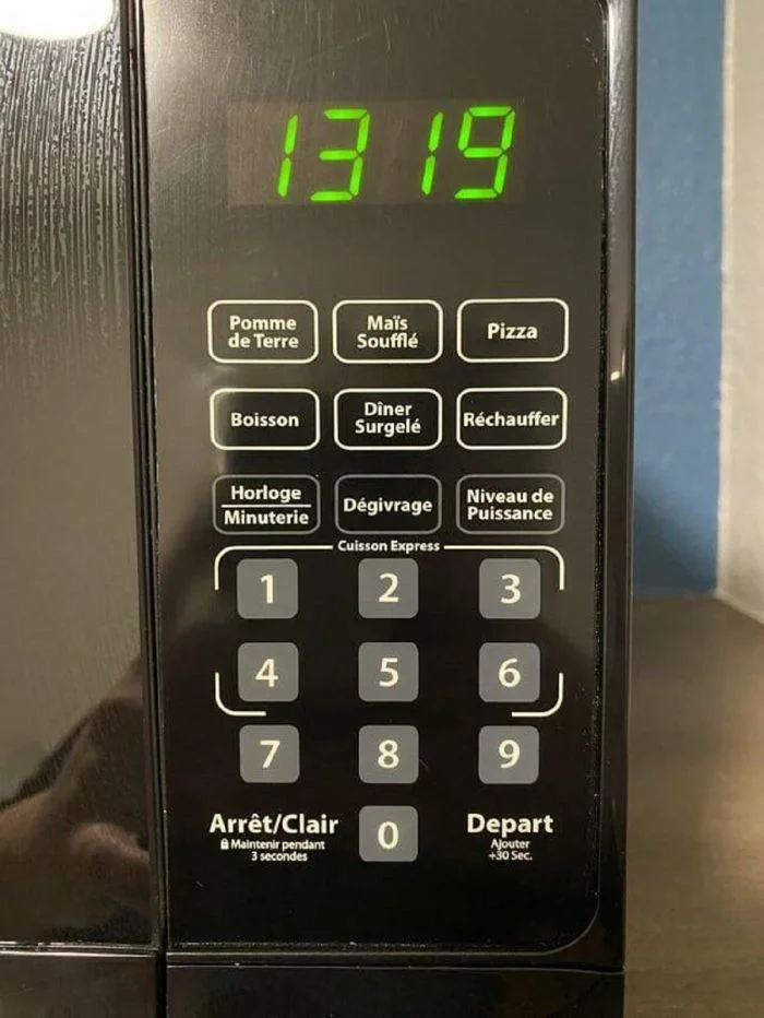 "Кнопки микроволновой печи в моём отеле на французском. А я в Иллинойсе."