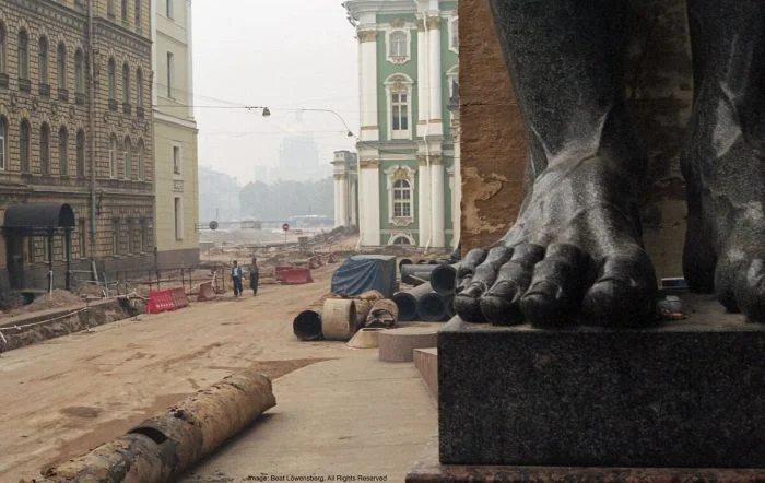 Вот, например, идёт обновление Миллионной улицы и Дворцовой площади. Пальчики атлантов великолепны, как всегда.