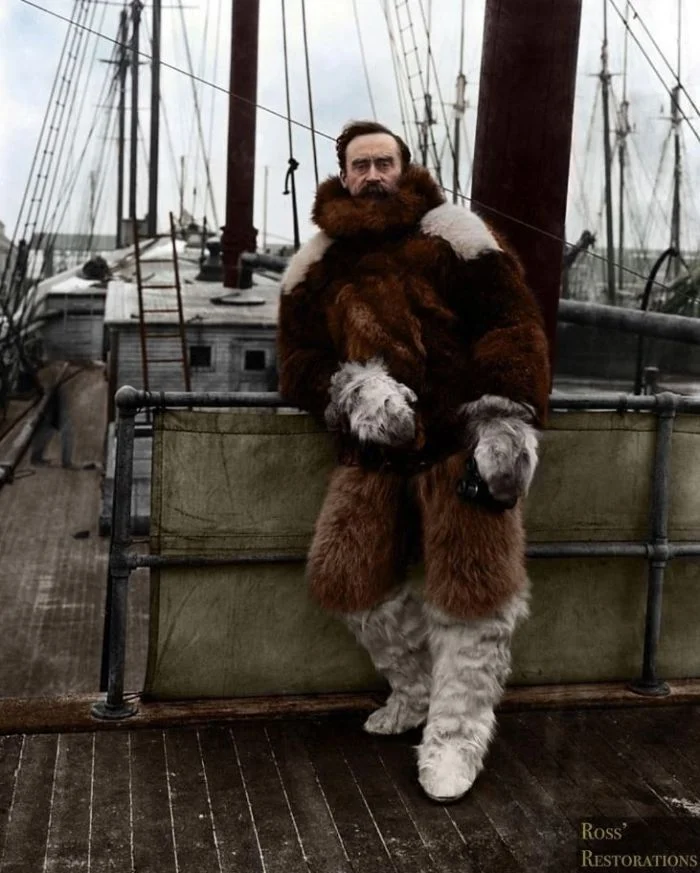 Американский исследователь Роберт Пири перед отплытием на Северный полюс в 1908 году
