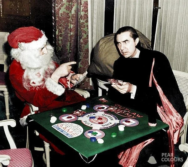 Бела Лугоши в роли Дракулы играет в карты с Сантой
