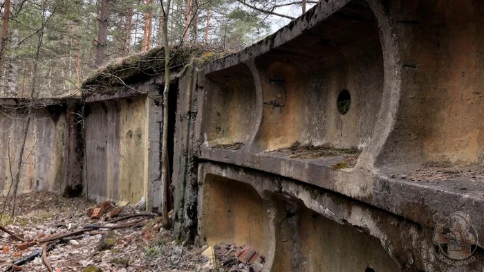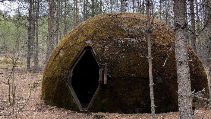 И на этом лесные находки не закончились. Сначала нам повстречалось необычное укрепление в форме яйца и ромбовидным дверным проемом. Эта сфера тоже имела отношение к полигону: ее купола испытывали на стойкость к ядерным взрывам.