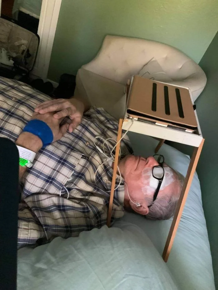 Самодельный держатель для планшета моего отца после операции на глазу.