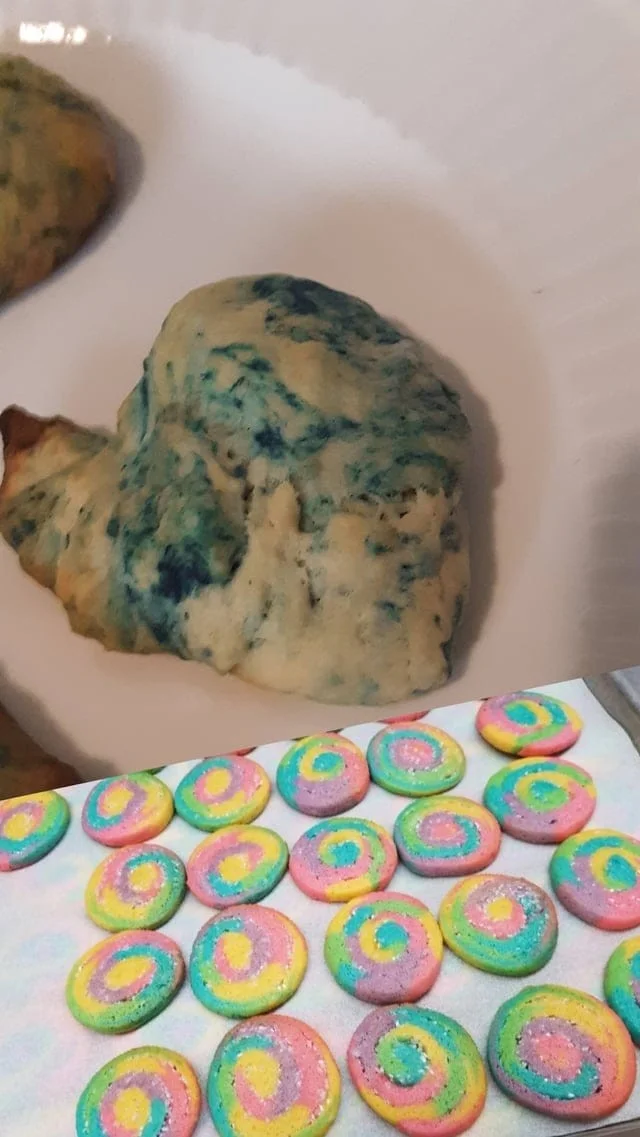 Я пыталась приготовить радужное печенье, но получилось нечто похожее на сыр с плесенью