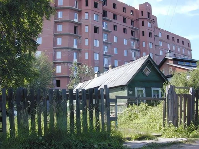 27. На деревянные домики в Коломягах уверенно наступают кирпичные дома побольше.
