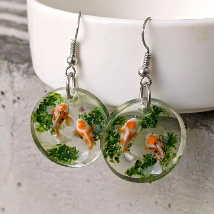 Несколько миниатюрных прудов с карпами кои, сделанных мной.
