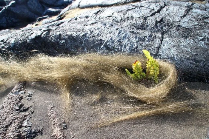 Такое чудное название получили волокна из вулканического стекловолокна, которые образуются в результате растяжения лавы, которая быстро остывает на воздухе.