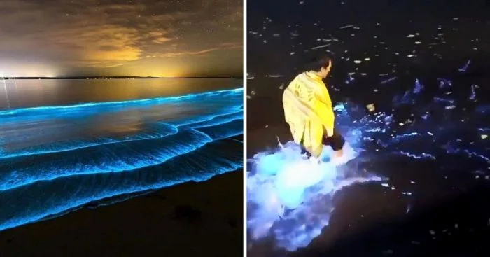 Свечение моря или океана происходит за счёт микроорганизмов, способных к биолюминесценции. Светиться они начинают от «раздражителей»: резкие движения воды (поэтому горят волны и прибой), ход кораблей, движения человека.