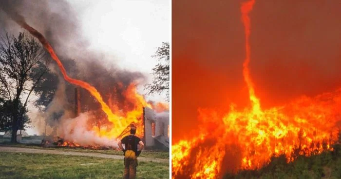 Обычно он представляет собой тонкий и высокий вихрь. Образуется в местах крупных пожаров при потоках ветра.