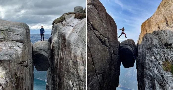 Кьёрагболтен — уникальный валун на горе Кьёраг в Норвегии, который застрял между скалами много тысяч лет назад. Пропасть под ним составляет почти тысячу метров, что не мешает туристам-экстремалам фотографироваться на нём.