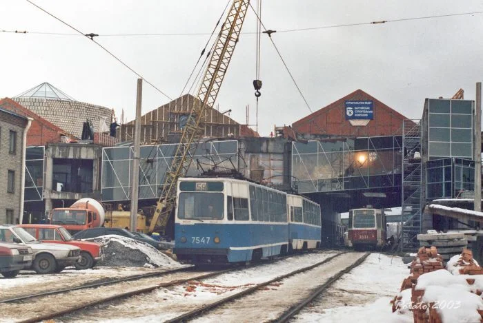 20. Два музейных трамвая, ЛМ-47 и ЛМ-33 около трамвайного парка номер 4 на Дегтярном переулке.