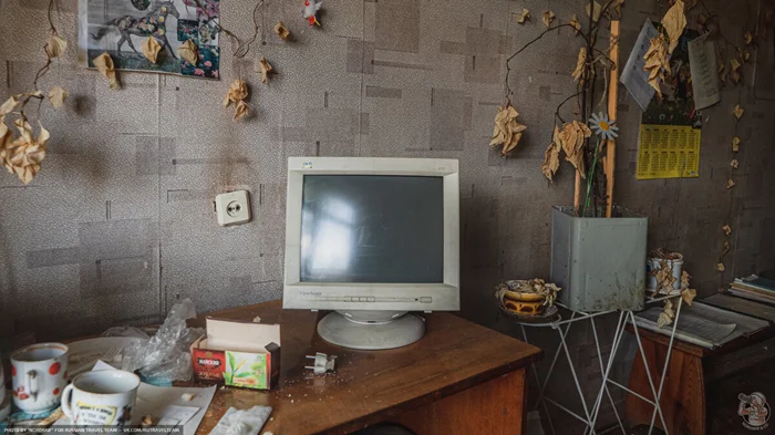 Уже не советские, но и не современные компьютеры тоже никто не спешит забирать. Даже когда с завода исчезают трубы отопления, мониторы и системные блоки остаются лежать в опустевших промозглых кабинетах. Сейчас старые пишущие машинки и счётные доски выглядят даже более ценными находками чем электроника "нулевых" годов.