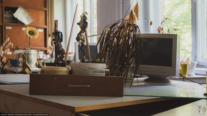 Электроника неизменный спутник покинутых рабочих мест. Пыльные телефоны со стёртыми цифрами и каракулями на корпусах, старое радио, настроенное на заводскую волну и огромные советские калькуляторы. Провода обрезаны, корпуса раскрыты, платы разобраны — телефоны уже не зазвонят, радио не заиграют, а на экране вычислительных машин уже не пробежит ровная строка зелёных чисел…
