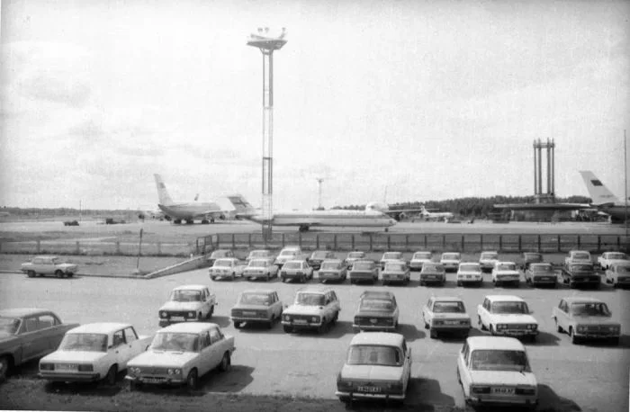 20. Автостоянка у аэропорта Пулково. Ленинград, 1990 год.
