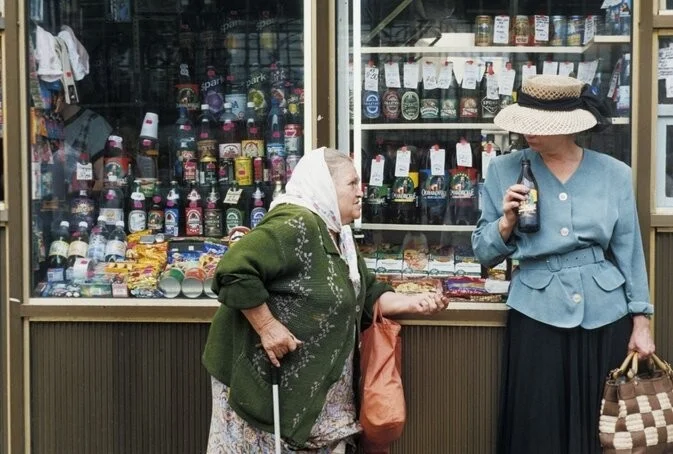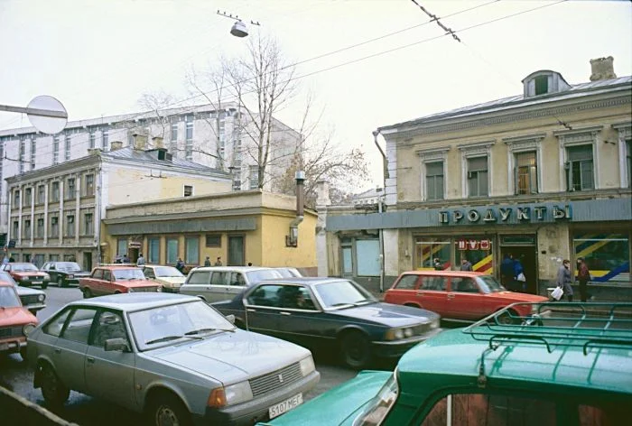 23. Aвтомобильный поток на улице Солянка, Москва 1991 год.