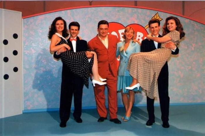 26. Борис Крюк и Алла Волкова на съёмочной площадке романтического шоу «Любовь с первого взгляда» 1996 год.