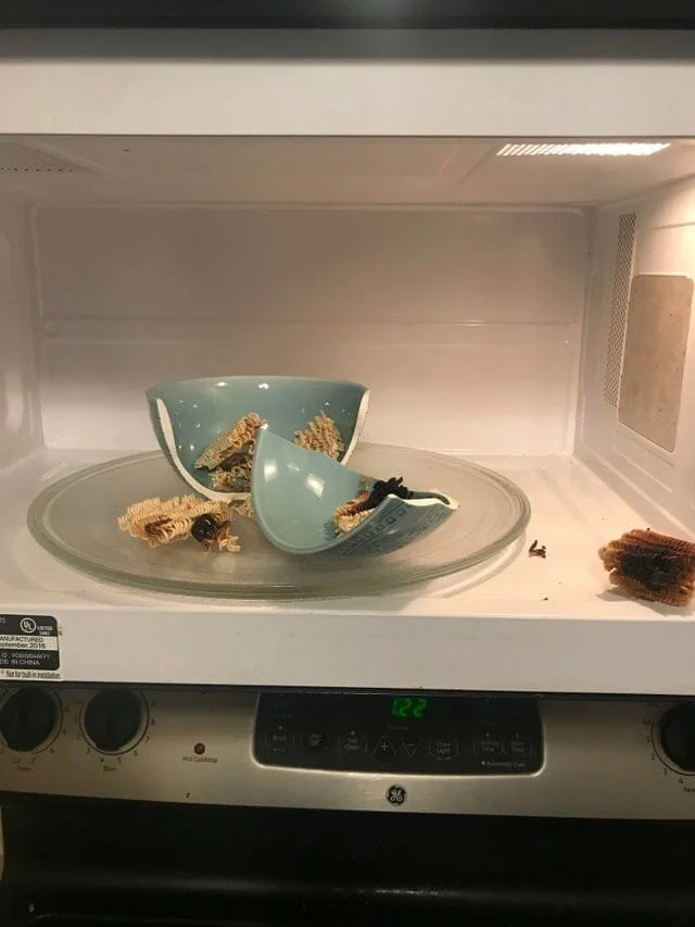 «Он забыл добавить воду в лапшу перед тем, как греть её в микроволновке»