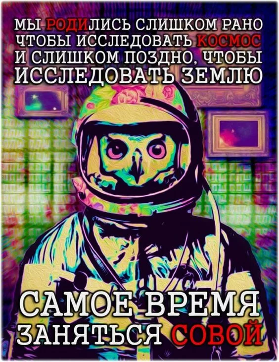 - Видишь ли, с возрастом возрастает потребность в стимуляторах – усилителях внутреннего огня для поддержания естественно угасающего горения. Я выбрал наиболее безопасные стимуляторы – траву и пиво. В общем, под этими субстанциями и делаются мои посты. Так что я рассчитываю, что думающий зритель находится примерно в таком же состоянии при просмотре материала… Но, конечно, есть люди, которые способны достичь этих уровней восприятия без стимуляторов…Это другие Пути, сходные по сути с богоискательством Дзен и Православия. 😊