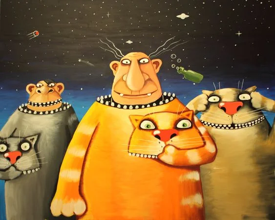 - Это, как я сказал, визуализация жанра “Поток Сознания”. По первому образованию я – профессиональный Системный Технолог Информационных Процессов. Ребёнком я дневал и ночевал в художественных музеях Москвы и выставках…потом учился в Художественной школе. В последние годы частенько захаживаю на выставки Московского Музея Современного Искусства… так что я знаком с основными направлениями классического и современного искусства. Сам когда-то засветился на художественной ниве… у меня было несколько выставок… Я был участником-основателем КСП-хиппи группы “Красные Самовары” в 1980-е-90-е. В результате я разработал собственный стиль, закончив на этом карьеру в живописи. Этот стиль сейчас успешно разрабатывает Вася Ложкин со своими котиками. Я тоже, как и он, в своих публикациях подстраиваюсь под зрителей. Я слежу за рейтингами и количеством просмотров и комментариев. Но это для меня всего лишь показатель в дальнейших планах и умозаключениях… Что же касается Искусства, то я стараюсь вывести жанр на новый уровень, прежде всего восприятия…