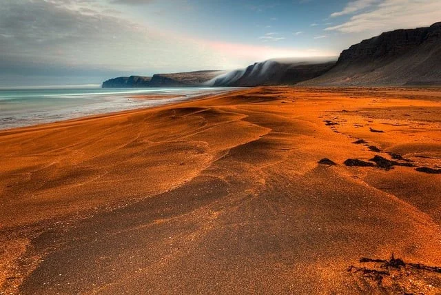 3. Пляж Раудасандур (красный песок), Исландия. Его розоватый оттенок меняется с золотого на красный в зависимости от погодных условий