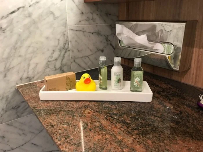 10. Резиновая уточка среди туалетных принадлежностей в отеле