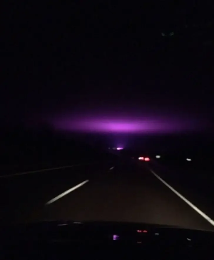 Это дом с энергосберегающими фиолетовыми или розовыми светодиодами. В пасмурную погоду они могут так выглядеть.