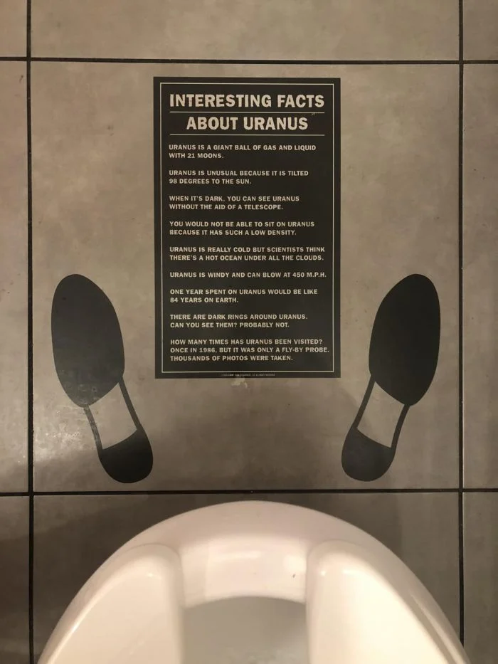 10. Наклейка на полу с интересными фактами об Уране, чтобы не было скучно во время посещения туалета