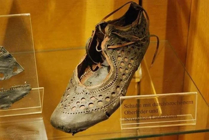 Пусть подозрительно знакомый дизайн вас не смущает: этот стильный башмак действительно сделали еще в первых веках нашей эры. Его обнаружили на дне колодца в римской крепости Заальбург в Германии. Женские туфли того времени украшали вышивкой, узорами и кружевом, что свидетельствовало не только о таланте мастера, но также о статусе и богатстве владельца.