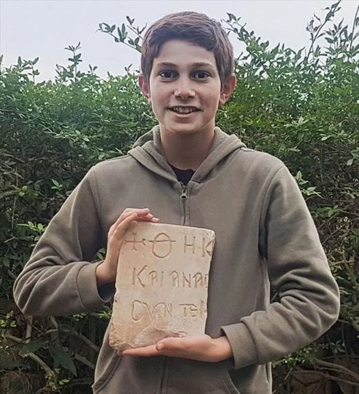 13-летний Став Меир вместе с семьей отправился на поиски грибов, но нашел кое-что поинтереснее. Он заметил торчащий из земли камень, который оказался погребальной табличкой византийской эпохи с надписью на греческом возрастом примерно 1500 лет. За эту уникальную находку власти Израиля наградили мальчика почетной грамотой. Управление древностей Израиля полагает, что камень украшал могилу богатого человека. На табличке удалось разобрать лишь часть имени, поэтому неизвестно, принадлежала могила Анастасию или Анастасии.
