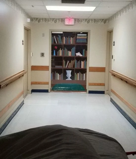 6. Входная дверь, замаскированная под книжный шкаф в палате для больных Альцгеймером