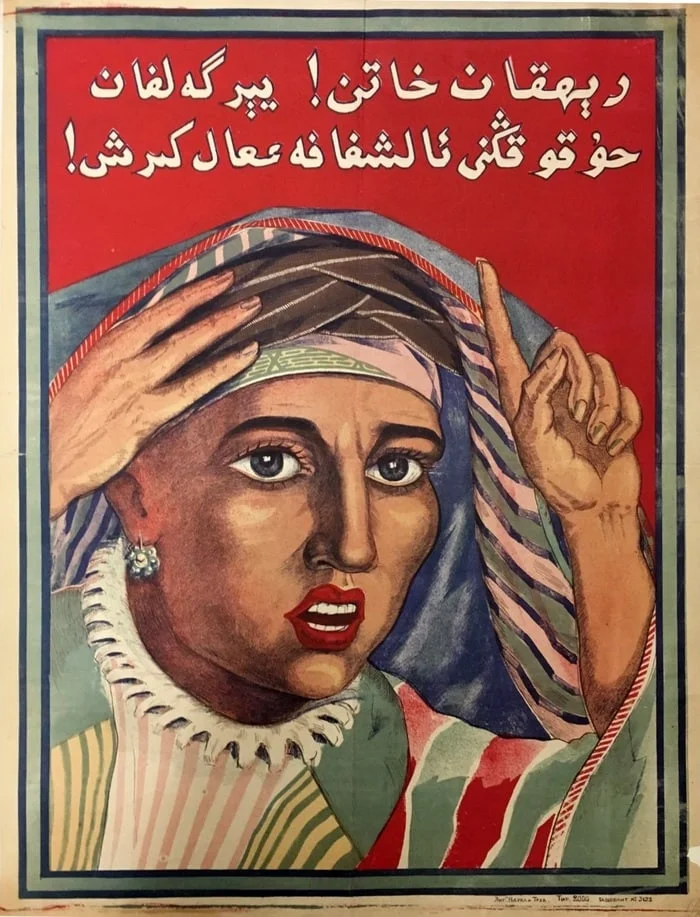 «Крестьянка! Начинай восстанавливать свои права, втоптанные в землю». Ташкент, Узбекская ССР, 1927.