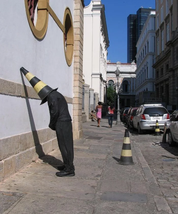 Его скульптуры сразу привлекают внимание людей, поскольку он размещает фигуры на самых оживленных улицах, повергая окружающих в шок.