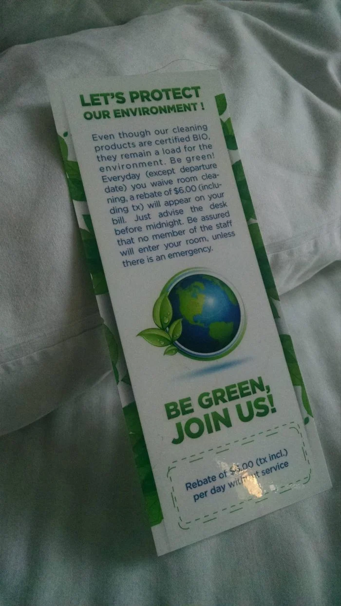 15. Отель в Квебеке возвращает 6 долларов за каждый день, когда вы отказываетесь от уборки, чтобы позаботиться об окружающей среде