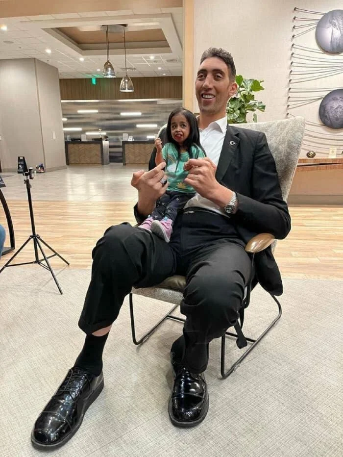 2. Самый высокий мужчина в мире Султан Косен (2 м 51 см) и самая низкорослая женщина в мире Джиоти Амге (63 см)