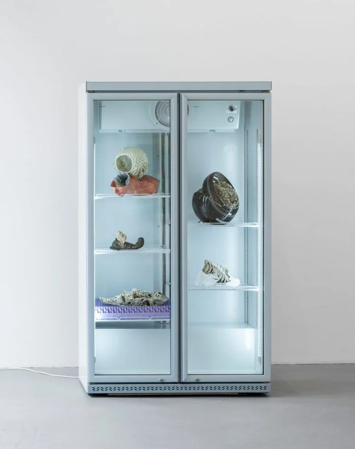 2. В своих скульптурах он объединяет разнообразные материалы, формы жизни, технологические артефакты и лингвистические ссылки