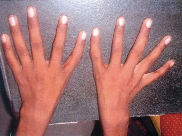 5. Синдром трехфалангового большого пальца, при котором большие пальцы имеют по три фаланги и выглядят примерно так же, как остальные пальцы