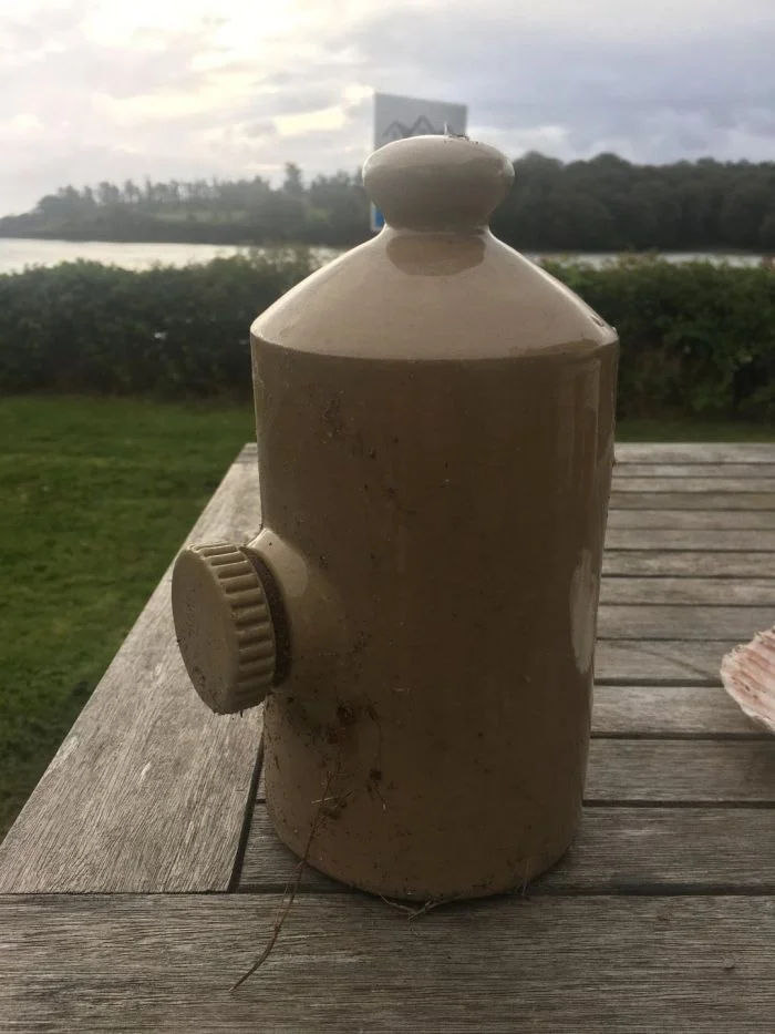 Это керамическая или глиняная грелка, внутрь которой заливалась горячая вода. Частенько использовалась в больницах.