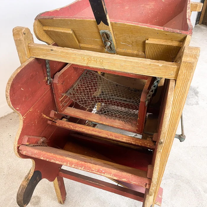 Это старая веялка - машина для выделения зерна из вороха, полученного после обмолота сельскохозяйственных культур.