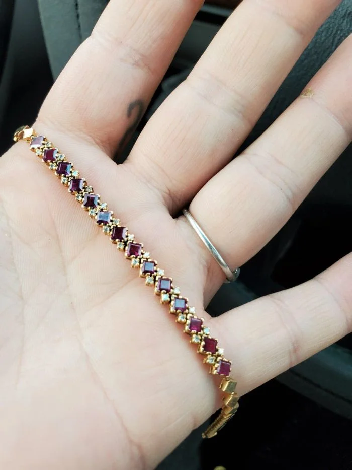 Браслет из 14-каратного золота с рубинами и бриллиантами. Эту находку удалось отхватить всего за 15 долларов
