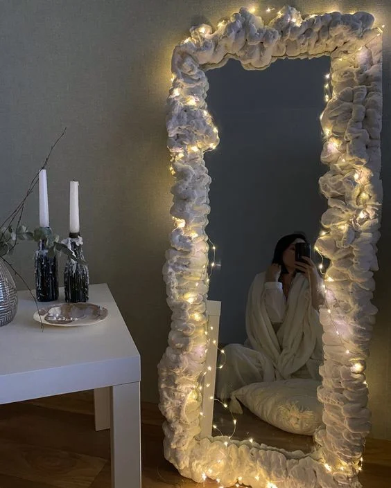 Зеркала с декоративными элементами: Встроенные светодиоды, гравировка, пескоструйный рисунок или даже нанесение фотографии на поверхность зеркала делают его не только функциональным, но и декоративным элементом интерьера. Их можно сделать своими руками.