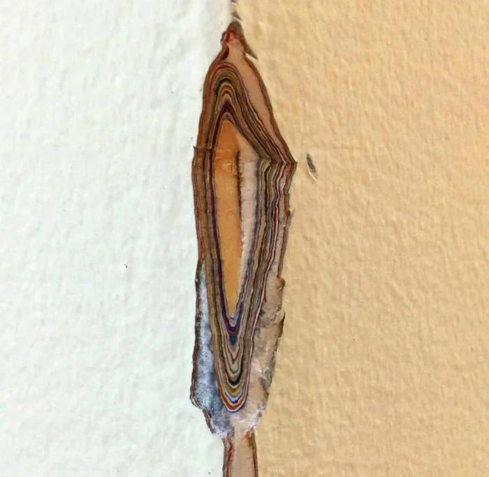 16. Стена была сломана, и видны годы наслоения краски