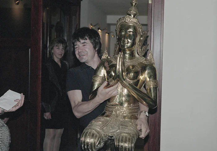 Певец Евгений Осин во время праздника в центре тайской кухни «Изумрудный будда» в Москве, 1999 год.