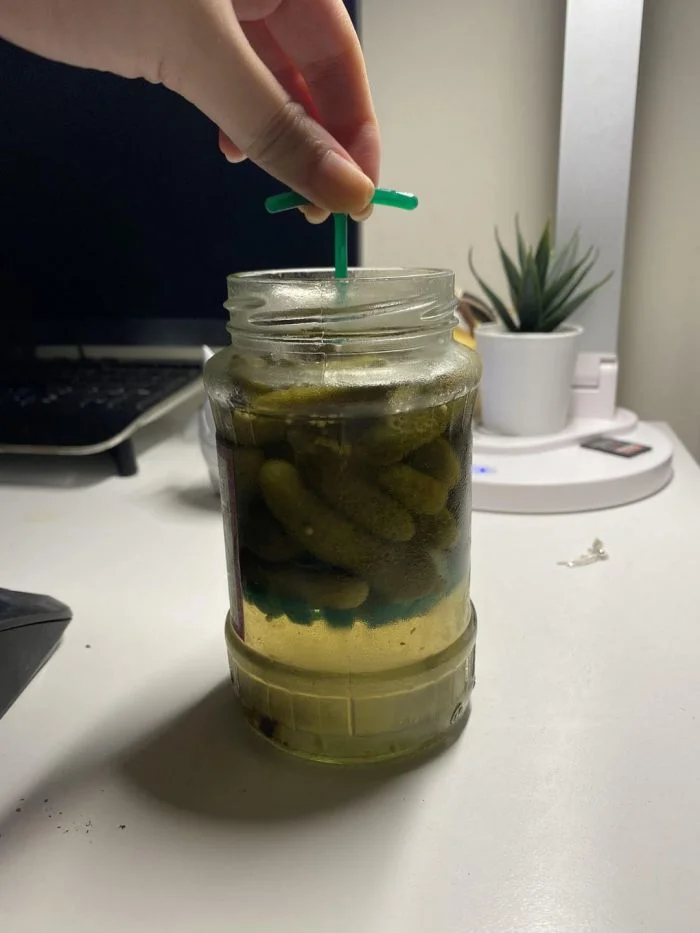 Как просто и одновременно гениально. Создатель изобретения, видимо, долго мучился, вылавливая огурцы из банки пальцами или столовыми приборами.