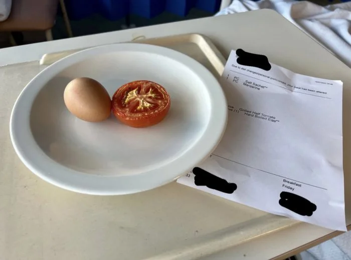 Вашему вниманию представлен больничный завтрак. Это низкоуглеводный рацион с малым содержанием сахара