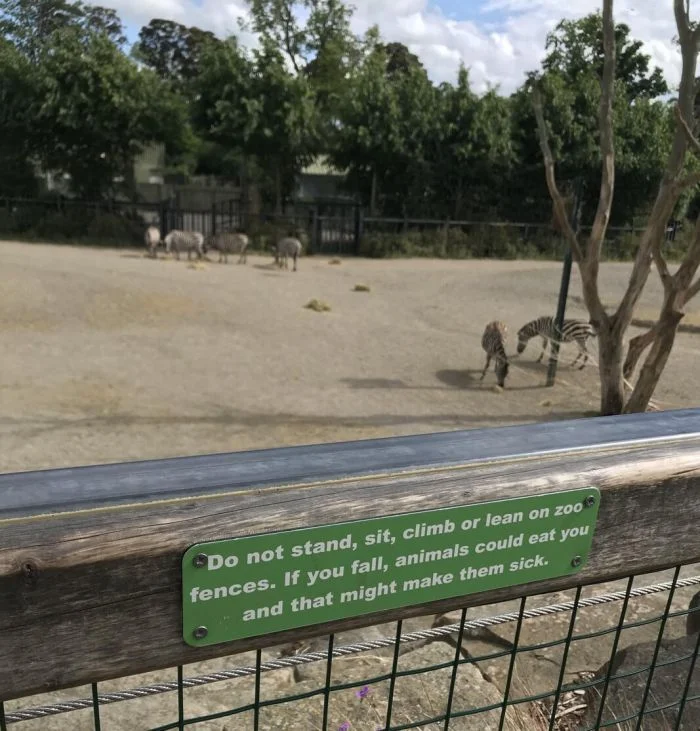 Не стойте, не садитесь и не опирайтесь на ограждения зоопарка. Если вы упадете, животные могут съесть вас, и это может вызвать у них тошноту.