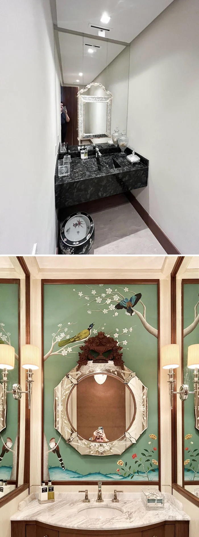 9. "Всё еще работаем над гостевым туалетом. Роспись делала самостоятельно, вдохновилась обоями в стиле шинуазри, выполненными на холсте из шелка и рисовой бумаги"