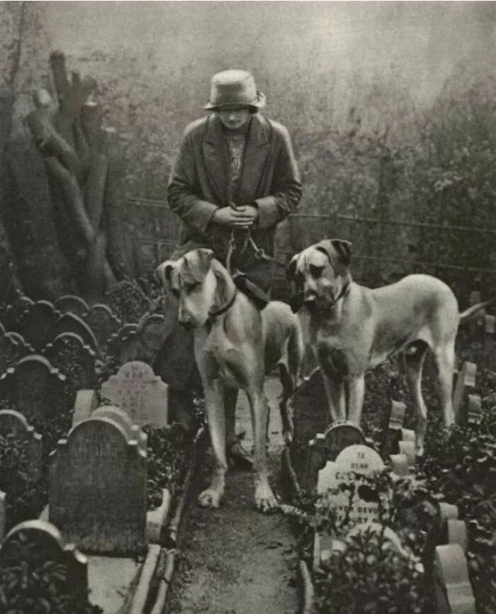 15. Женщина выгуливает собак на собачьем кладбище в Гайд-Парке, где похоронены более 1000 домашних животных викторианской эпохи