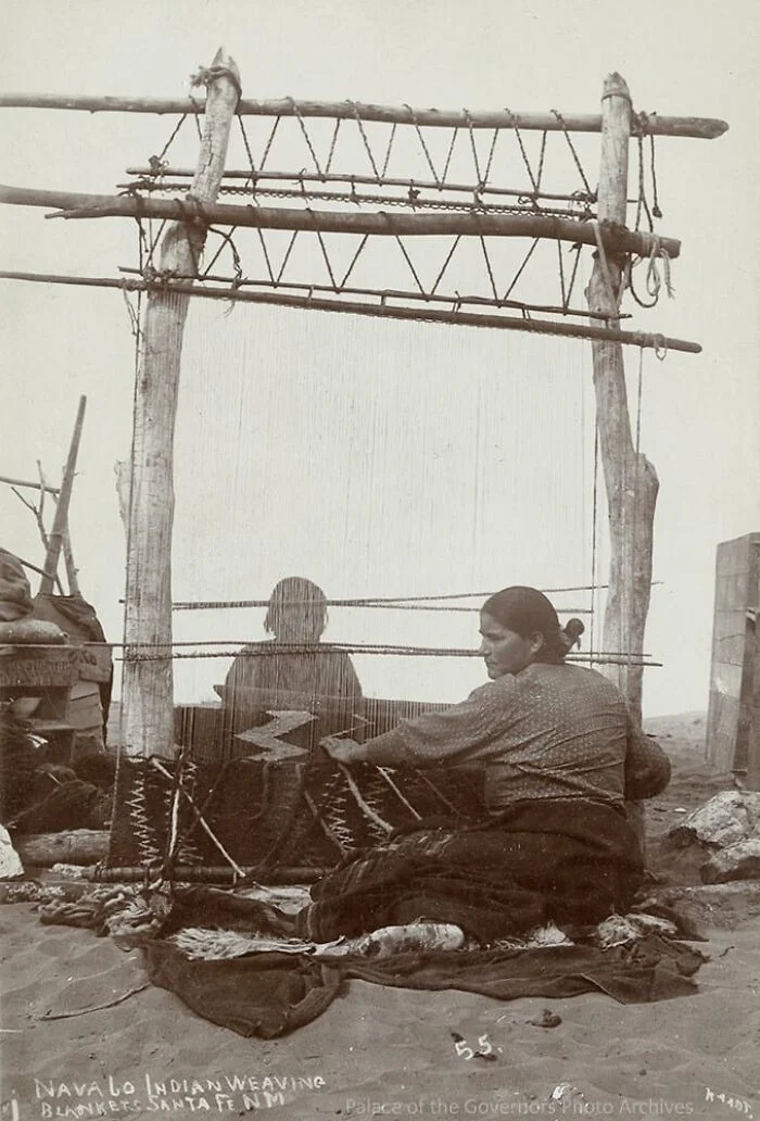 18. Женщина из народа навахо плетет одеяло, Санта-Фе, Нью-Мексико. Фотограф: Кристиан Г. Каад, 1900 год