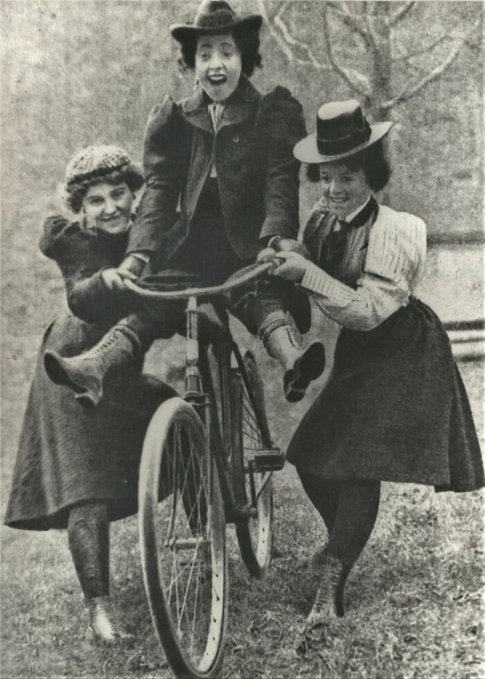19. Девушка учится кататься на велосипеде, 1895 год. Фото Уильяма Гордона Дэвиса