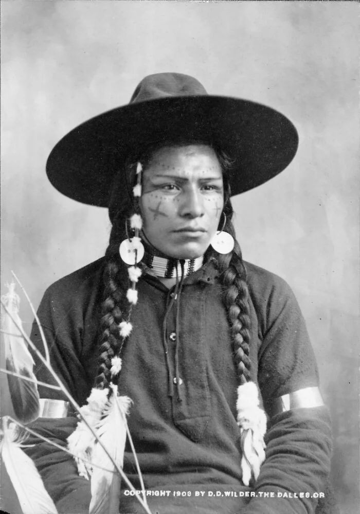 22. Портрет индейца васко с раскрашенным лицом, с перьями и бусинами в волосах. Уайлдер, 1903 год