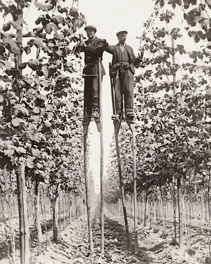 23. Сборщики хмеля на ходулях в Фавершаме, Англия, 1920 год
